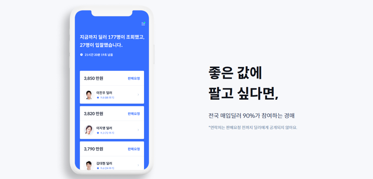 - “혼자 알아보기 복잡했는데, 딜러들이 입찰해줘서 결정이 쉬웠다.”