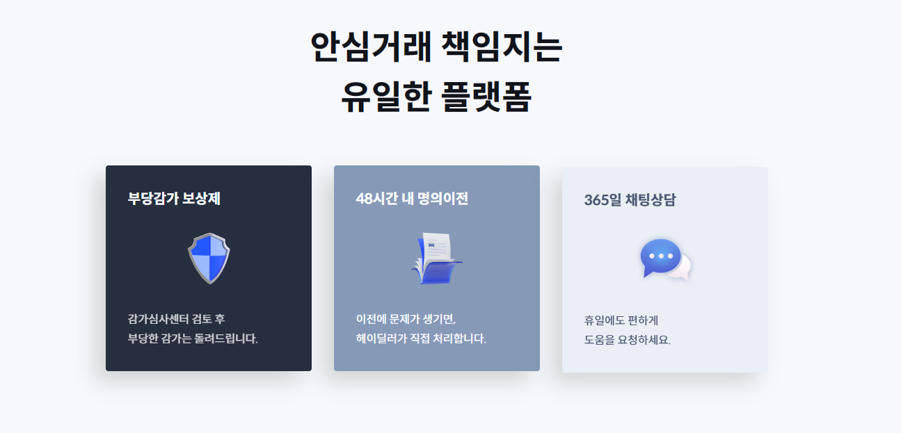 A. 헤이딜러는 중간에서 모든 절차를 관리하고 있어, 안전하게 거래할 수 있습니다.