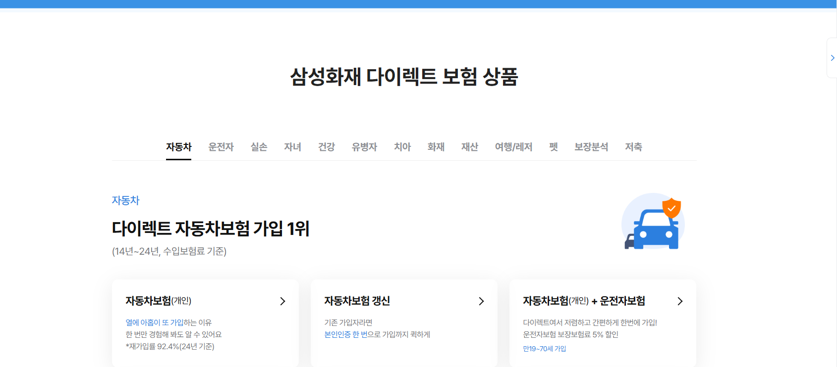 하지만 이제는 다릅니다. 오프라인이 아닌 온라인에서 직접 설계하고, 더 저렴한 보험료로 가입할 수 있는 ‘다이렉트 자동차보험’이 대세로 떠오르고 있습니다. 그중에서도 특히 신뢰성과 보장 범위, 그리고 합리적인 가격까지 갖춘 삼성화재 다이렉트 자동차보험이 주목받고 있습니다.