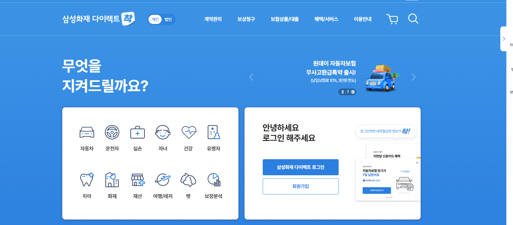 지금 바로 삼성화재 다이렉트 자동차보험을 통해, 스마트한 자동차보험 라이프를 시작해보세요.