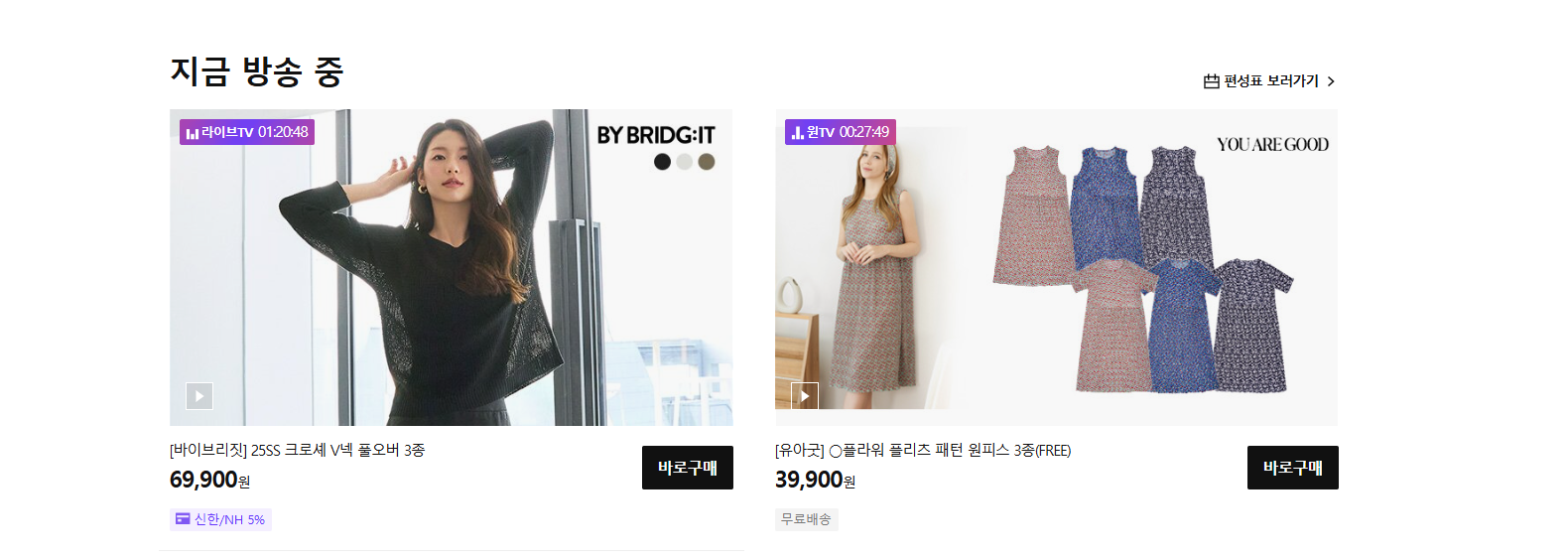 - 방송 연동의 편리함: 방송 시청 → 즉시 구매 가능