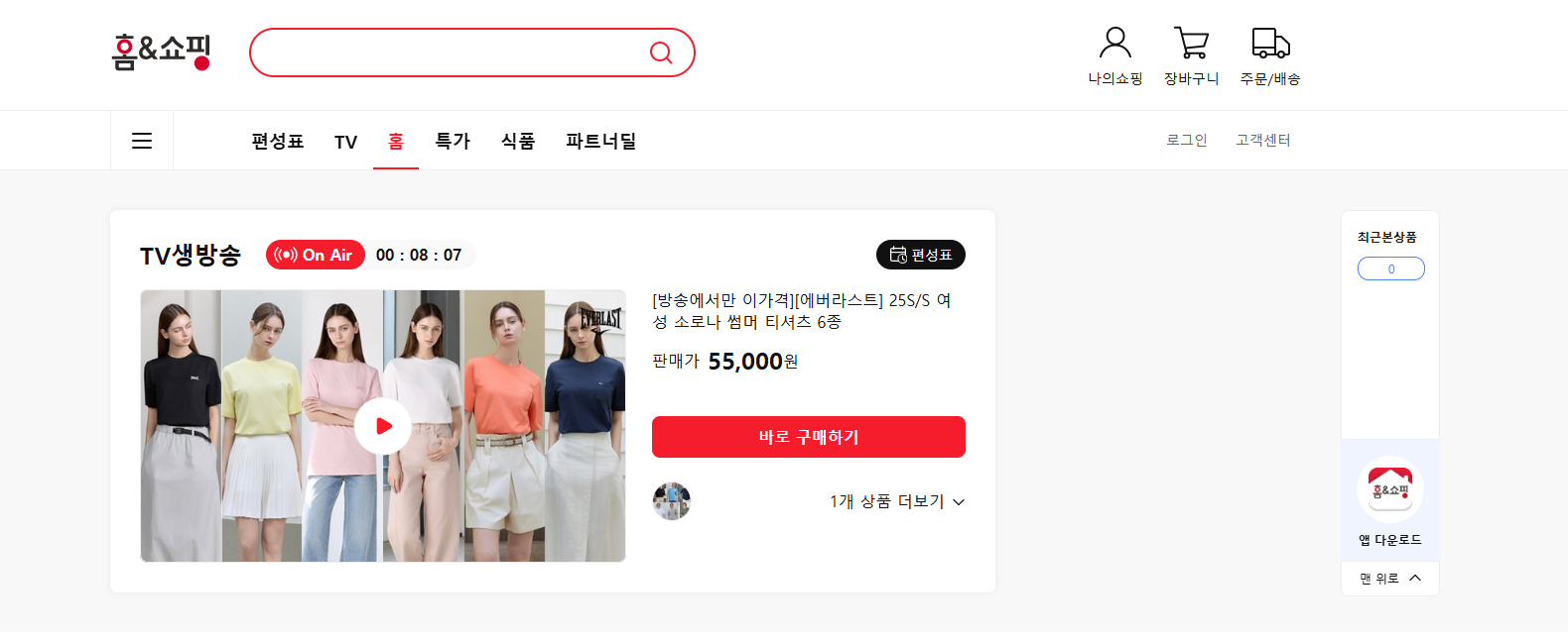 홈앤쇼핑 인기 상품 분석