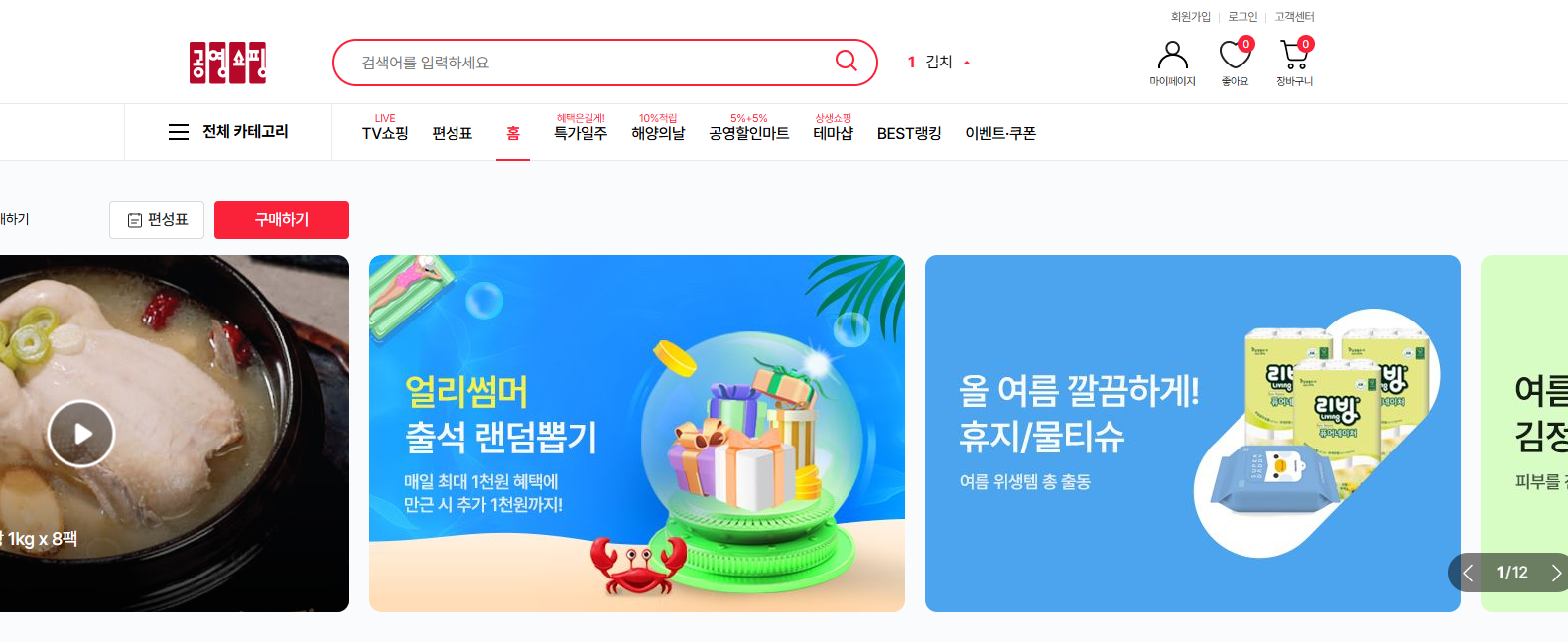 공영홈쇼핑 홈페이지 주요 기능