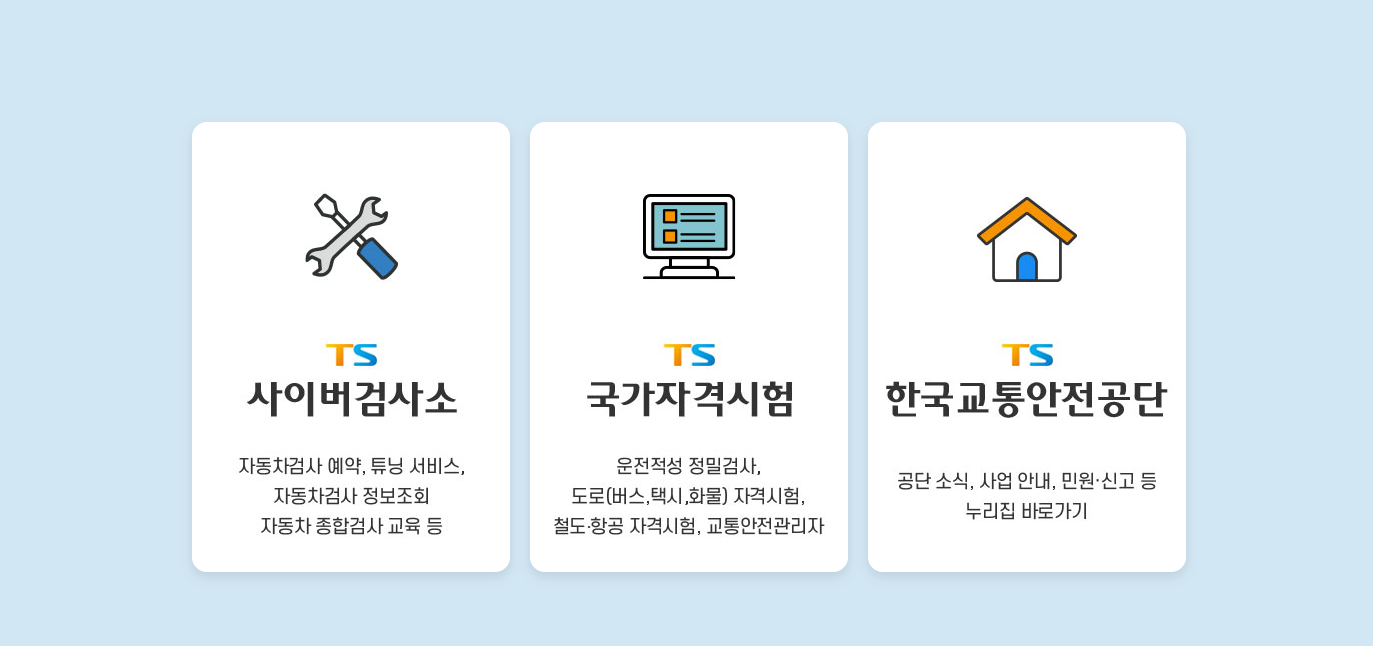 사람 중심 교통안전을 선도하는 세계 최고의 전문기관, 자동차검사, 자동차안전연구, 사업용 자동차관리, 교통안전 조사연구 정보 제공 정보시스템의 구축, 운영 기술 지침을 준수하여 제작하