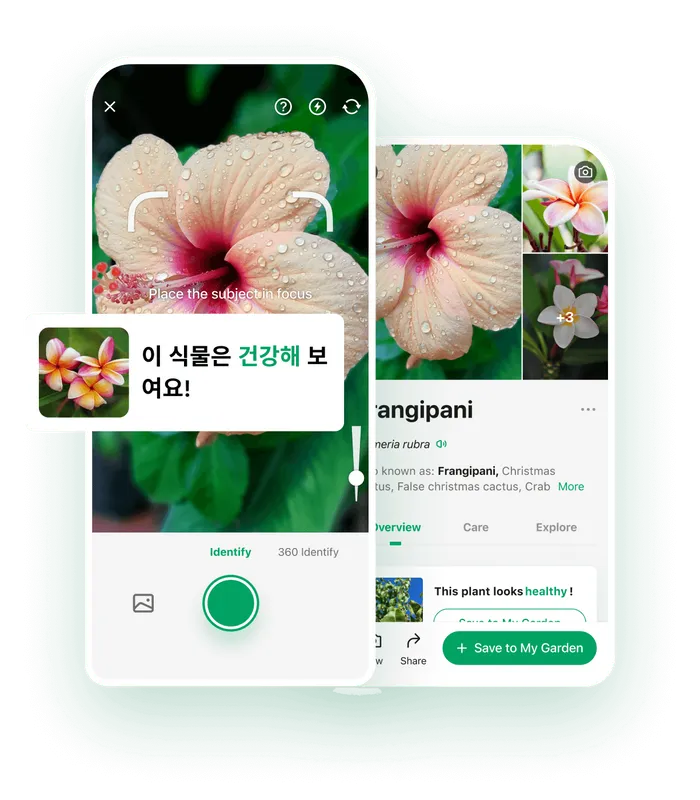 식물, 나무, 꽃 식별; 맞춤형 관리 가이드; 질병 자동 진단