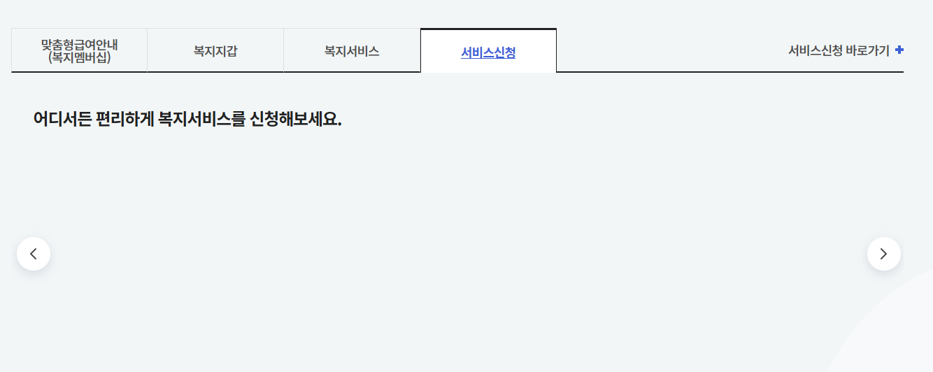 전국 모든 복지 혜택을 한 곳에 모아두었고, 필요한 복지 서비스를 검색, 조회, 신청할 수 있도록 도와줍니다.